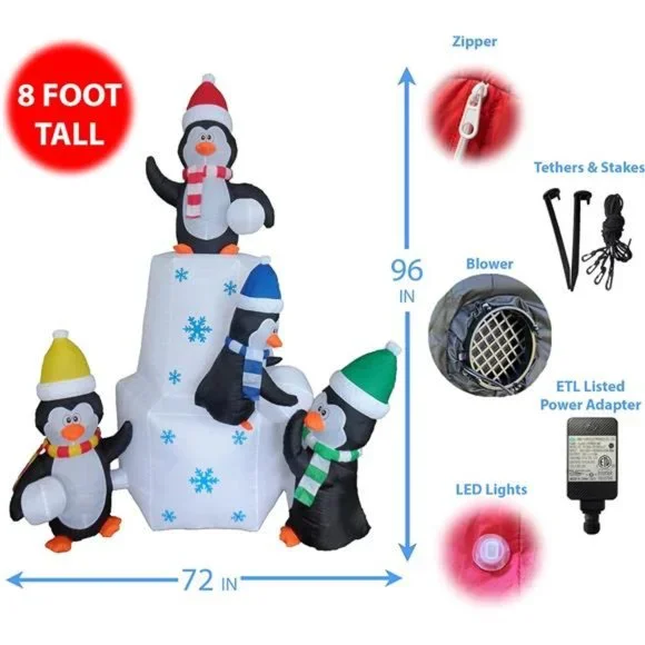 🧿Inflated Size Measures (Length x Width x Height): 72 x 48 x 96 inches🧿Self inflates in moment when plugs into standard electrical outlet🧿LED lights up for better nighttime viewing and deflates for compact storage🧿Stakes, tethers, and air blower included for quick and easy setup🧿Great for indoor, outdoor, party, stage prop and more