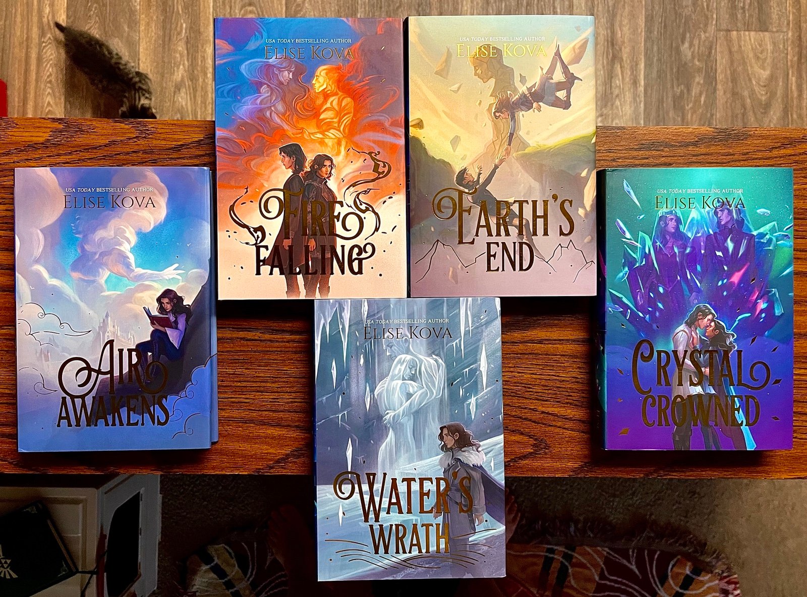 No Slipcase! This is the five books of Air Awakens written and signed by Elise Kova published by Bookishbox. Photos show various bits of shelf wear. Comes from a cat-friendly and smoke-free home.