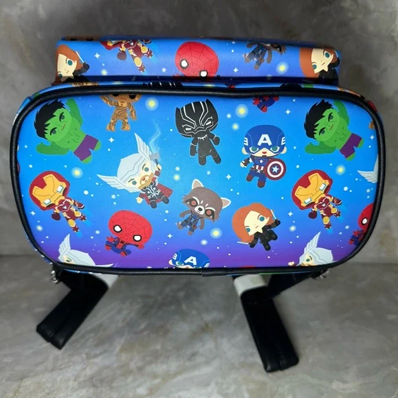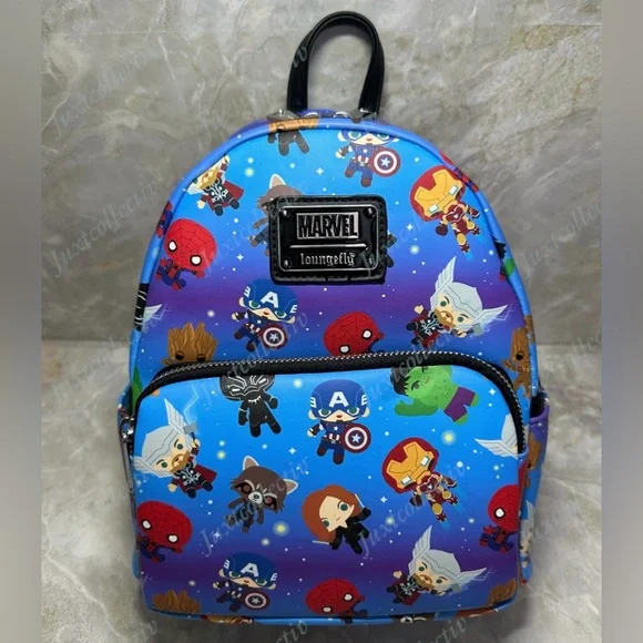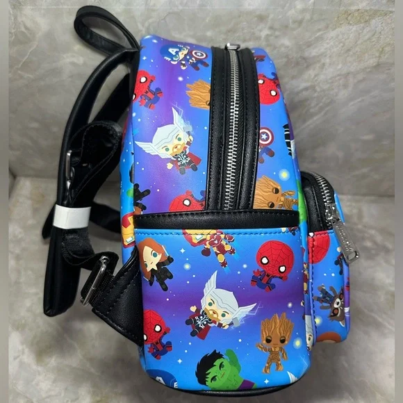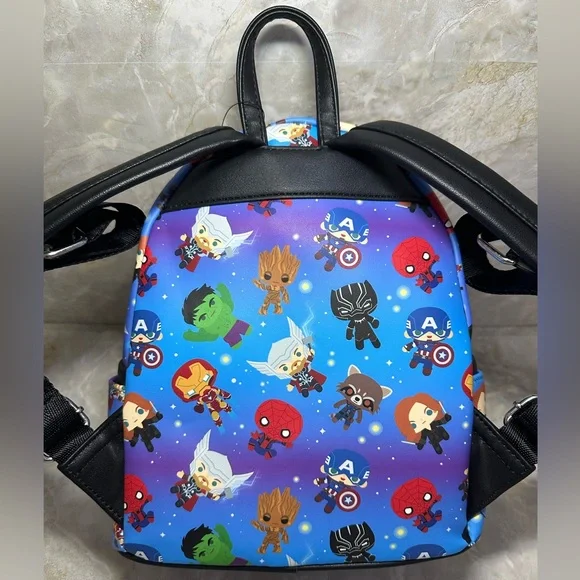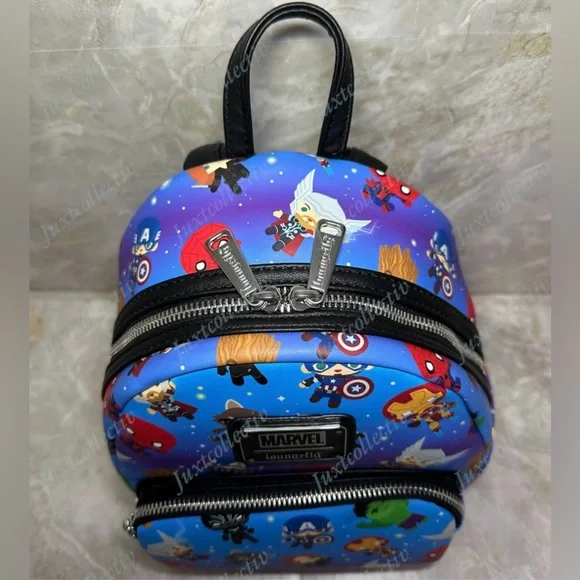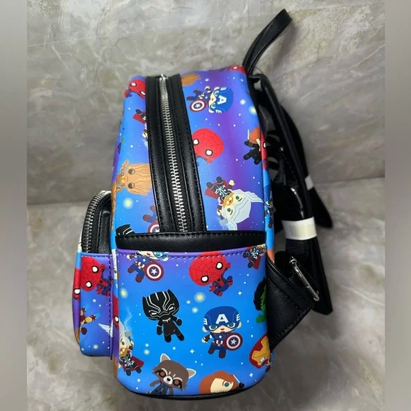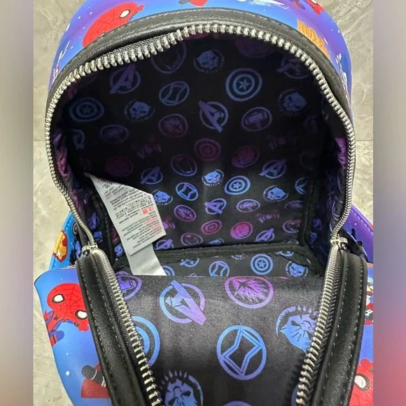 Avengers Chibi Funko Pop Loungefly Mini Backpack & Wanda Burgundy Minnie Ears HeadbandShowcase your Marvel fandom with this exclusive Avengers Heroes Bundle • Mini simulated leather backpack• Allover Marvel Funko Pop! screen art• Characters include Thor, Iron Man, Captain America, Black Panther, Spider-Man, Groot, Rocket Raccoon, and Black Widow• Double zipper main compartment• Front zip pouch• Loungefly logo metal pulls• Silvertone hardware• Adjustable padded shoulder straps• Top carry handle• Side slip pockets•Fabric lined with allover print featuring symbols of Marvel characters• Marvel x Loungefly logo label plate• Polyurethane / metal• Approx. 10 1/2" H x 9" W x 4 1/2" D• Scarlet Witch design• Padded ears• Allover screen art chevron pattern with appliqué lines• Headband face is molded design• Simulated leather headband exterior• Embroidered "I have everything under control"• Non-slip velour interior• Inspired by Marvel Studios' Doctor Strange in the Multiverse ot MadnessAuthentic official Disney Parks merchandise New with tagsPet-free and smoke-free environment All sales are finalPattern placement varies Minor indentations on foam ears may existPlease note: The color of the product may vary slightly from the images due to lighting, flash, and screen resolutionSuperhero, Marvel enthusiast, Disney, cosplay accessory, Disneyland Resort, Marvel Avengers Campus, Disney California Adventure, Mickey Ears Headband, Minnie Ears Headband