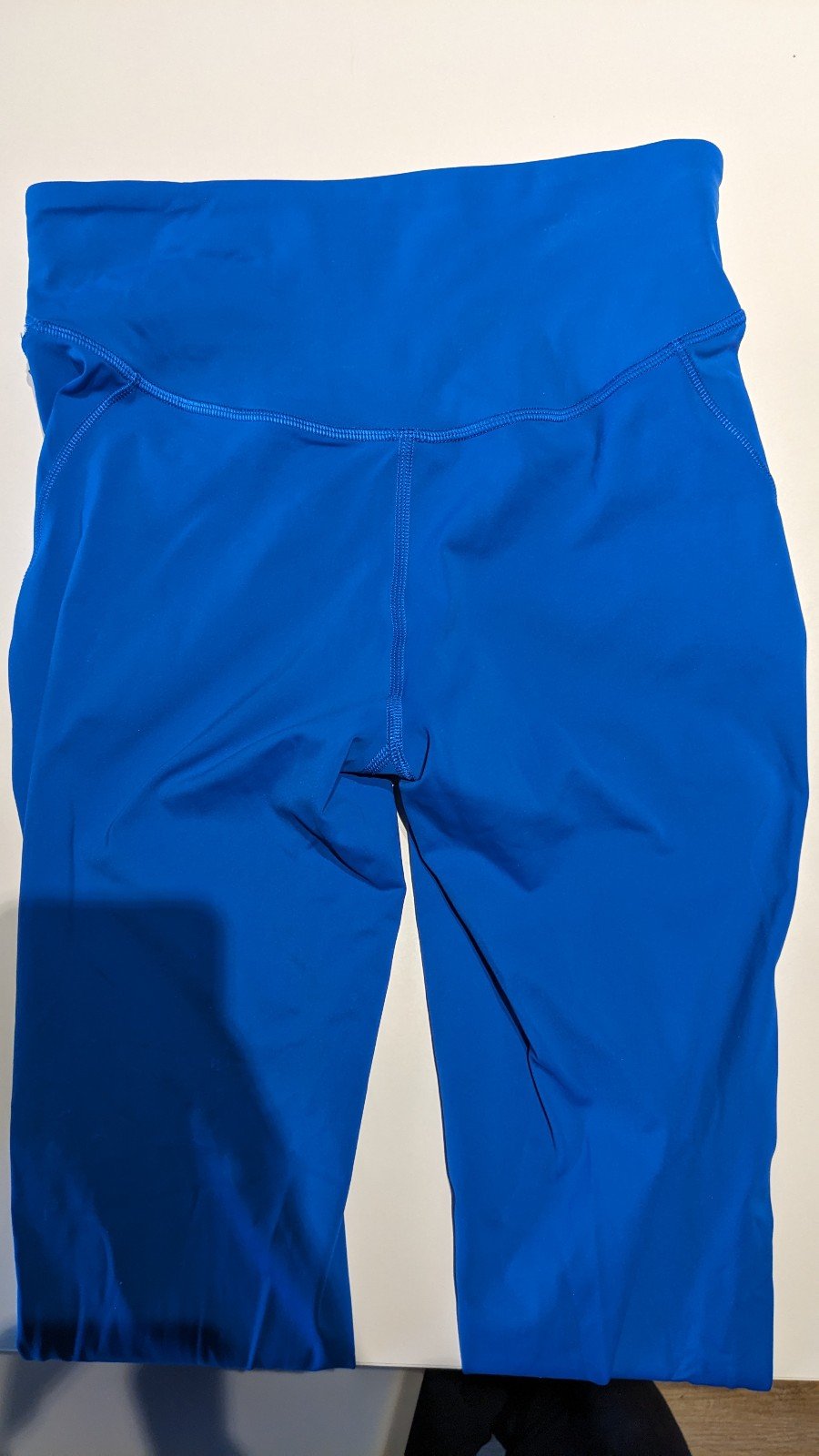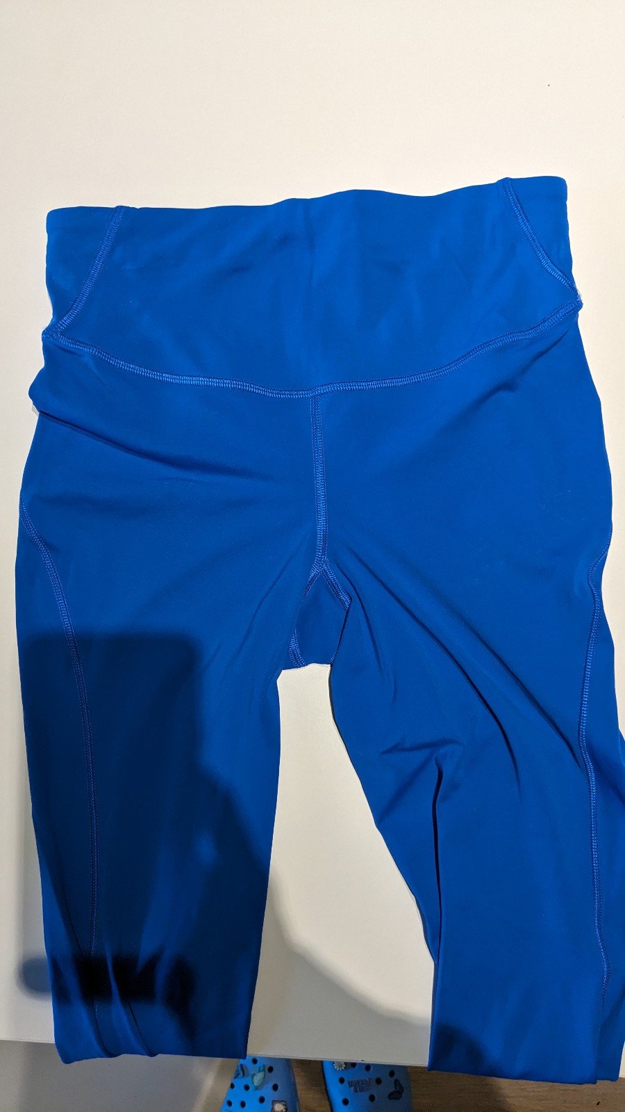Lululemon Base Pace High-Rise Tight 25" inseam in Blazer Blue Tone (BLBT) in Size 6. Great for running. Back pocket, drawstring, and laser cut ankle hem. The color is a really bright vivid medium blue, good for standing out when running