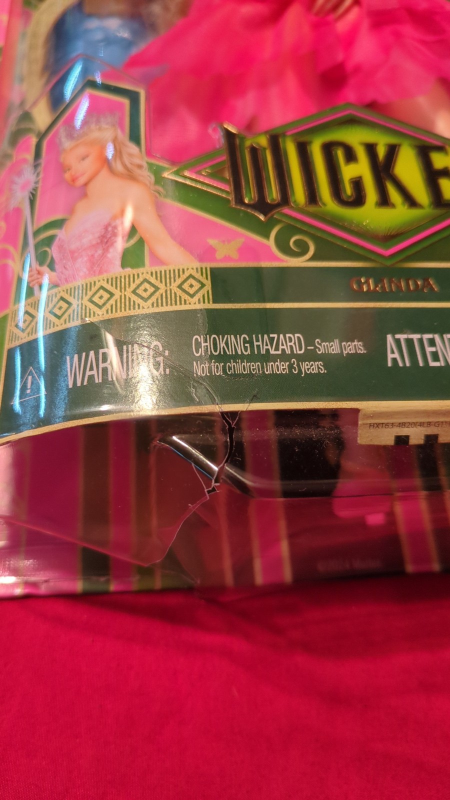 First edition release of the Mattel Universal Wicked Ariana Grande as Glinda Fashion Doll featuring the highly controversial "wicked.com" error label on box - recalled, rare, and hard to find.
