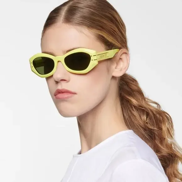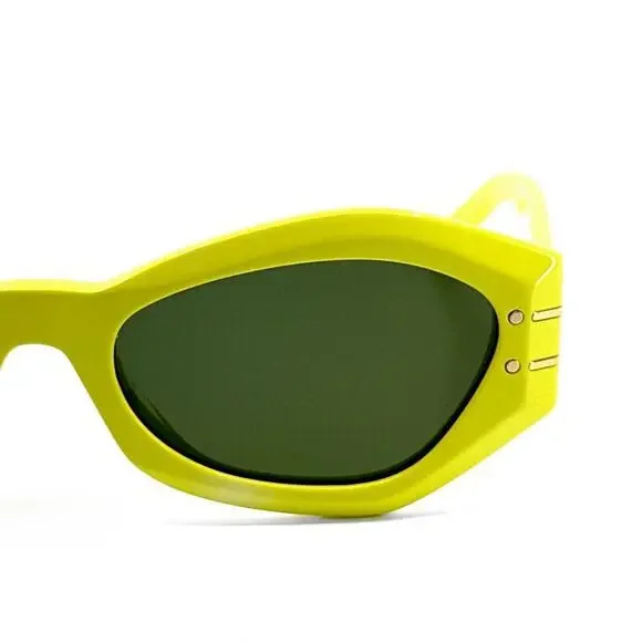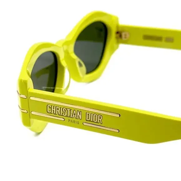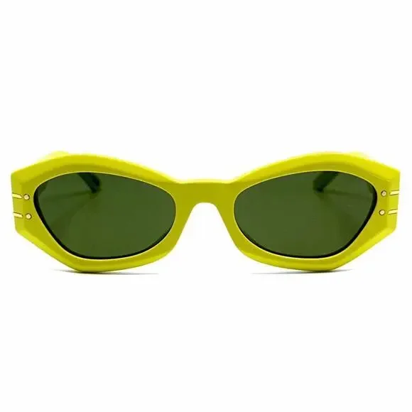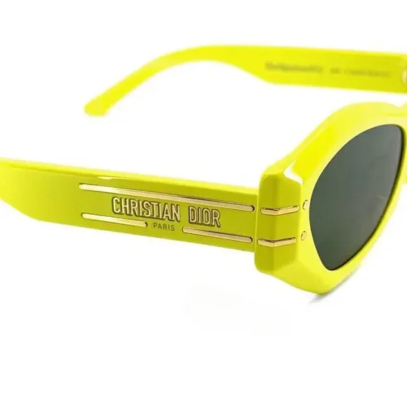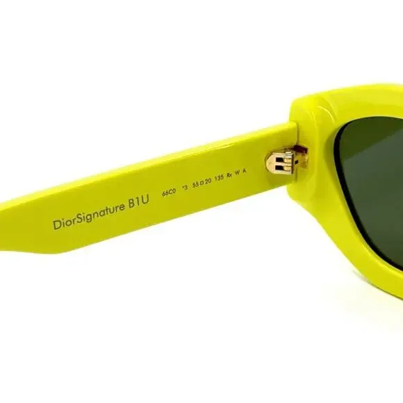 New !CHRISTIAN DIOR Sunglasses Signature B1U 66C0, AuthenticBrand: DiorGender: UnisexFrame Color: Yellow Lenses Color: Green Frame Shape: Cat EyeFrame Type: Full RimFrame Material: AcetateLens Material: PlasticSize: 55/20/135Accessories: Full authentic original packaging, which may include case, lens cloth, safety booklet and/or tags.Manufacturer: TheliosUV Protection: Category 3