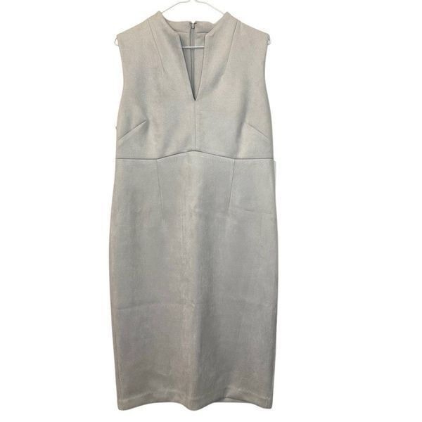 NWT Calvin Klein Microsuede V-Neck Sleeveless Stretch Sheath Dress Gray Size 12